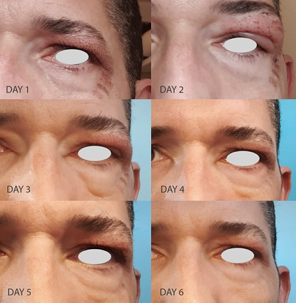 Foto paziente dopo una sessione di Blefaroplasma ® dal giorno 1 al giorno 6